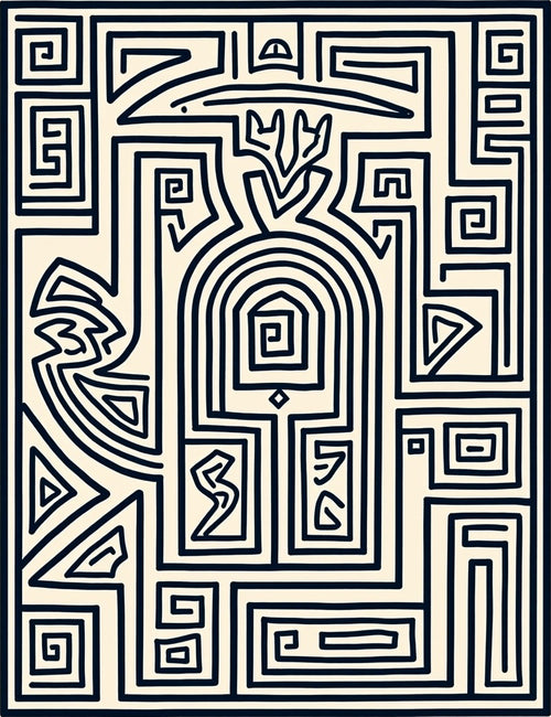 Abstract Cubist Face Gold Line Rug -